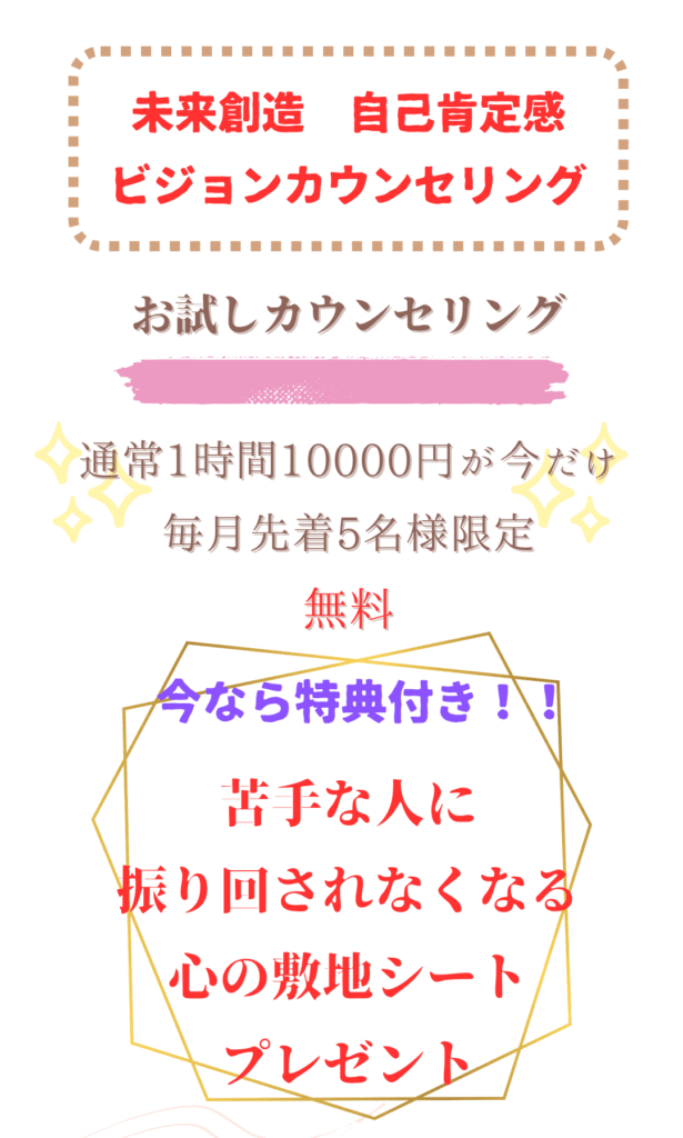 この方は、ふたつのお悩みを抱えていてどうしていいか分からない状態でカウンセリングを受けられました。そこでお話ししたのが相手の敷地と自分の敷地という考えでした。この敷地という考え方を上手に使って相手との距離を的確に取ることで、悩まれているコミュニケーションが上手に取れるようになります。実際に楽になられたとのこと。とても良かったのではないかと思います。